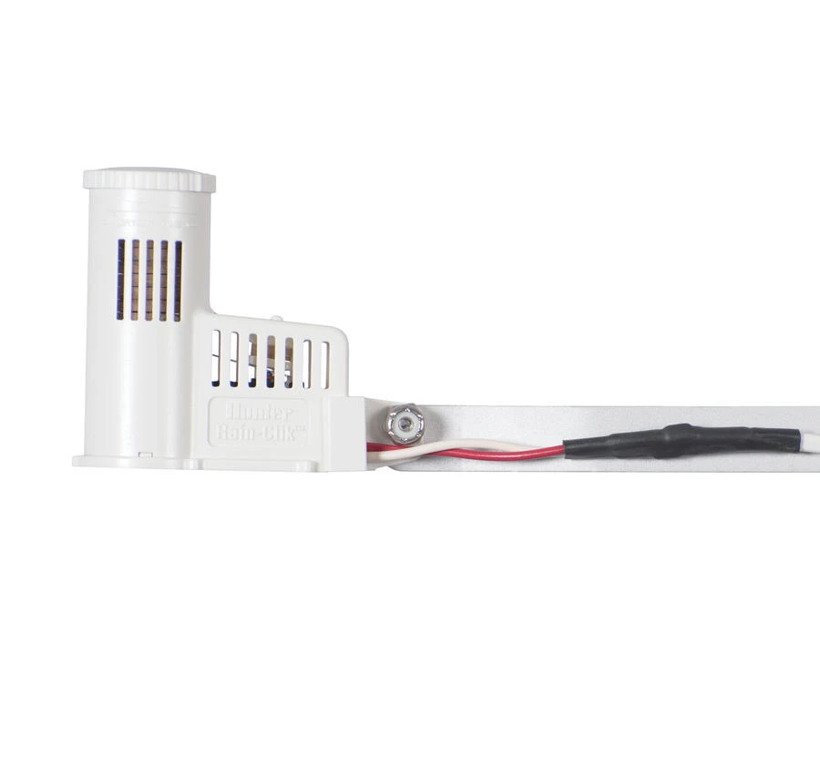 Most rain-sensing devices work by accumulating a set amount of rainfall before a switch is activated that interrupts the circuit from the controller and shuts off the system. In that βaccumulation timeβ, the system will unnecessarily continue to water. This can look especially bad for conservation-conscious municipalities, businesses, and residences. With built-in Quick Response technology, the Hunter Rain-Clik and Wireless Rain-Clik can command a controller to shut off right when it starts to rain. The Rain-Clik can be mounted on an eave or any flat vertical surface like a wall or fence. A gutter mount is also available that allows for easy installation of the Rain-Clik on the edge of a gutter.